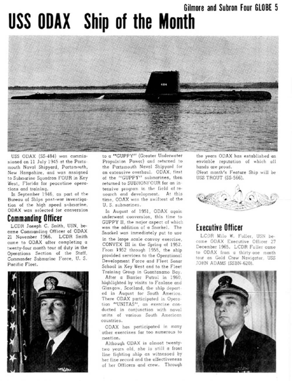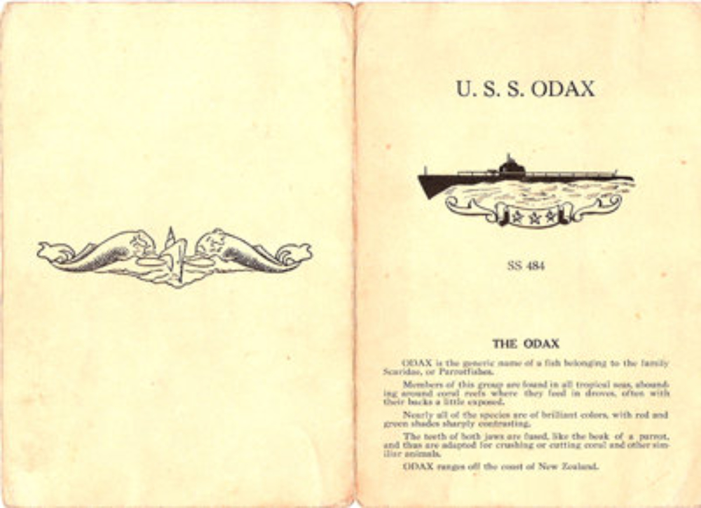 USS ODAX (SS-484) US Service 1945-1972 Tench-Class Submarine (1945), Converted to Guppy (1947), Converted Guppy II-Class Submarine (1951)This site is dedicated to the USS ODAX (SS-484), the officers, and enlisted men who served on board during her career in the silent service.E-MAIL WEBMASTER